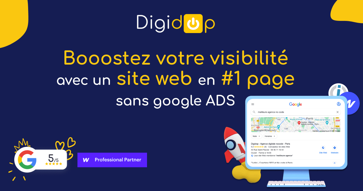 Digidop est une agence créant des sites web sur Webflow. Non seulement, l'entreprise fait la création du site web, mais ils s'assurent que vous recevez du trafic web organique.