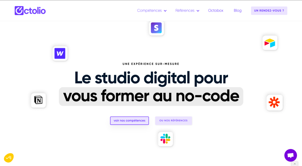Octolio est une agence no code maitrisant beaucoup d'outils. L'équipe aide dans la création de site internet via Webflow, la création de CRM personnalisé, l'automatisation de process et l'accompagnement peer to peer.